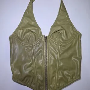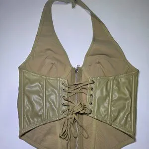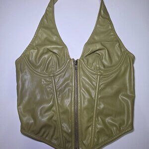 Out From Under Olive Green Faux Leather Halter Corset Top Size M