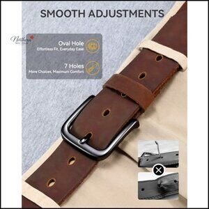Mens Leather Belt 35mm Genuine Full-Grain Casual Jeans