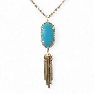 Kendra Scott Rayne Turquoise Tassel Necklace 14K Gold Plated 30” + Extender