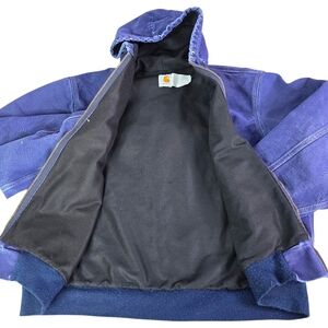 Carhartt Vintage Denim Canvas Distressed Thrashed Hooded Work Jacket Jacket