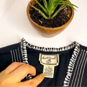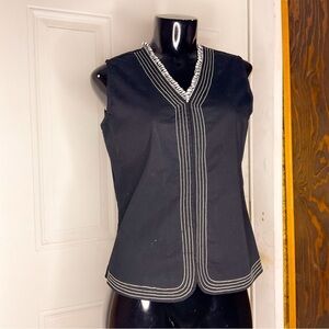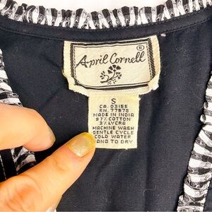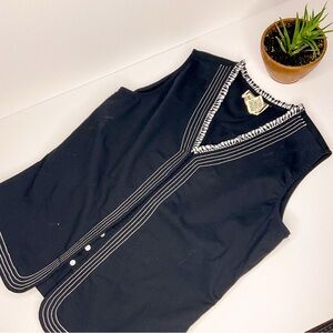 VINTAGE April Cornell Black Cotton Tank Top Button Up Blouse