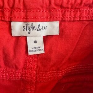 Style & Co. Women's Red Mid-Rise Comfort Waist Cargo Utility Shorts 18 Stretch. Pre-owned in great condition. Comes from a clean, smoke free home. No holes or stains.