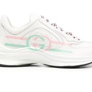 Elegant Gucci sneakers with a white base and green accents. Stylish and comfortable for everyday wear.