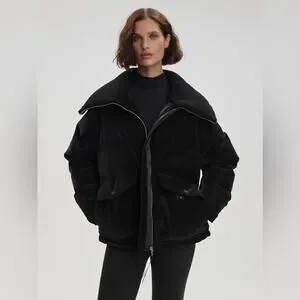 Stylish black jacket by Varley. Features a cozy design with a large collar. Perfect for cold weather.