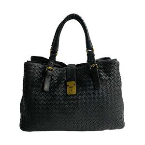 BOTTEGA VENETA Black Leather Intrecciato Tote Bag