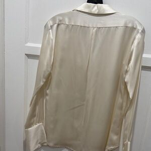 Luxurious cream silk blouse with a classic collar. Perfect for elegant occasions.