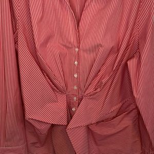 J. PETERMAN WOMENS 1950'S TIE FRONT BLOUSE STRIPED BUTTON DOWN
