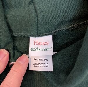 Men's Hoodie Dark Green Pullover Sweatshirt With Hood Hanes Ecosmart Size 3XL