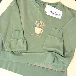 Cropped Chicka-d spring flowers crewneck size small