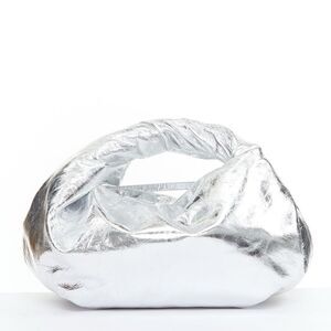DRIES VAN NOTEN Twist silver metallic textured leather top handle bag