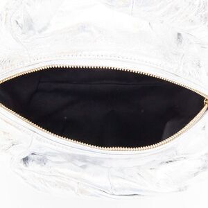 Delivery Duty Paid included – DRIES VAN NOTEN Twist silver metallic textured leather top handle bagReference: LAYU/A00121Brand: Dries Van NotenModel: TwistMaterial: LeatherColor: SilverPattern: SolidClosure: ZipLining: Black FabricExtra Details: The bag is made of metallic and crinkled silver-tone leather. It features a distinctive twisted top handle and a slouchy, gathered silhouette crafted from soft leather.Made in: ItalyCONDITION:Condition: Excellent, this item was pre-owned and is in excellent condition. Comes with: One dust bag. MEASUREMENTS: Width (width across base): 21cm / 8.2"Height (base to opening): 13cm / 5.1"Depth (side depth): 10cm / 3.9"Handle drop: 5cm / 2"JHROP is not affiliated with Dries Van Noten. This Dries Van Noten item is authentic. Measurments: width: 100 mm length: 210 mm height: 130 mm strap length: 0 mm handle drop: 50 mm