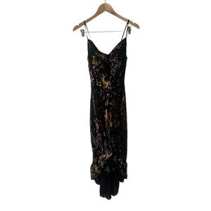 Betsey Johnson Burnout Velvet Black Floral Midi Slip Dress High Low Ruffle Hem 4