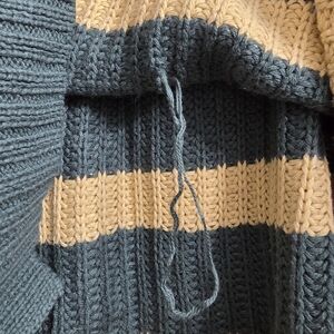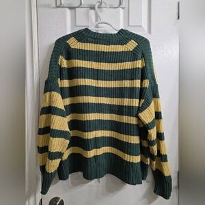 American Eagle Woman's Green & Yellow Striped Oversized Knit Sweater - L