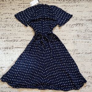 Navy floaty dress with tie waist and neutral pattern. Size XS, NWT