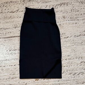 Super flattering black pencil skirt with side slits, fold over top, micro ribbing. Size S