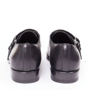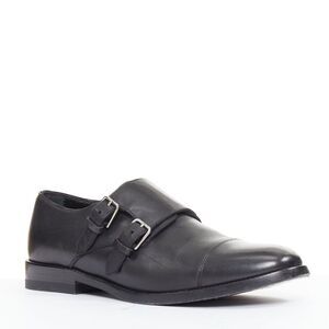 SAINT LAURENT black leather silver buckle double monk strap oxford shoes EU35.5