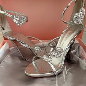 Step out in style with these elegant silver heels, featuring dazzling heart embellishments.