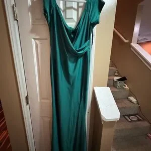 This elegant green evening gown is perfect for any special occasion. Its flowing design and rich color make it a standout piece in any wardrobe.