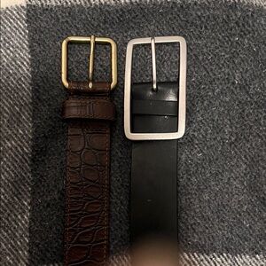 Banana Republic Genuine Leather Black Belt & Berge Croc embossed GL Brown Belt