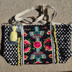 NWT America & Beyond Embellished Beaded Embroidered Tote--Midnight Butterflies