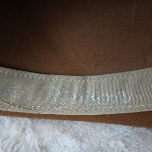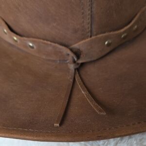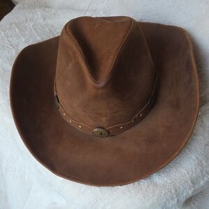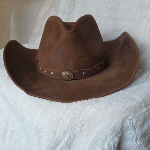 Authentic brown leather STETSON cowboy hat with decorative band. (this hat can be unisex)