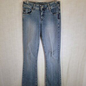Silver Bootcut Jeans Womens 27 Stretch DV8 Light Blue Wash Mid Rise Belt Denim