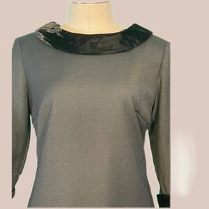 Talbots Vintage Black Wool Sheath Velvet Trim Back Zip V-Neck Size 4