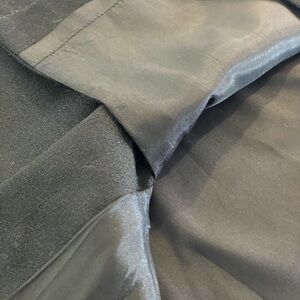 Luxe 100% wool shell, acetate satin lining, black velvet collar & 3/4 sleeve cuffs. Back V-neck, hidden back zipper, modest back slit for easy movement.