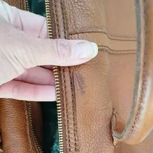 Great condition Fossil handbag. Removable strap. Brass in perfect condition.Handles and strap show no wear. 1 pen mark on the inside, otherwise no marks on inside. Small pen marks on top by the zipper. I didnt even notice until I was taking pictures. Shown in last 2 pictures.