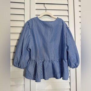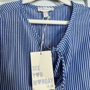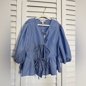 See You Monday Women’s Blue and White Tie Front Peplum Blouse Size Small