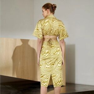 SHEIN All Over Print Lace Up Shirt & Split Detail Skirt