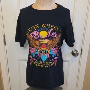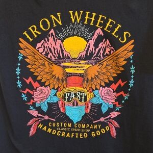 Iron Wheels Skull Wings Mountain Black Graphic T-shirt