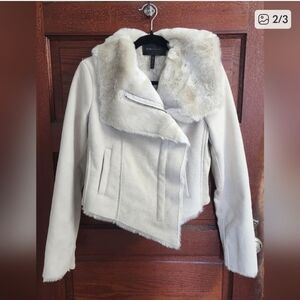 BCBG MazAzria cream faux fur jacket, NWT, size XS