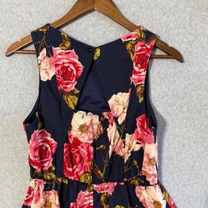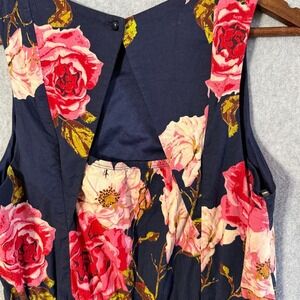 Navy Floral Sleeveless Fit Flare Dress Women's Size M Short Summer