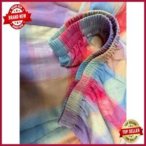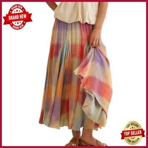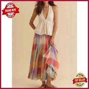 Brand new, no flaws, and ready to shine — this vibrant plaid skirt offers a playful, flowy silhouette perfect for casual days, beach outings, or dressing up for a special event. The elastic waist ensures comfort, while the ruffle detail and big hemline create a fun, feminine look.