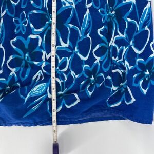 Lounges Floral Print Short Sleeve Button Front Midi Dress Blue Green Women's