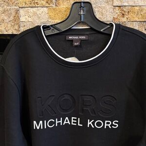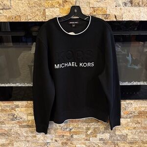 Brand new without tag Elegant black crewneck sweater by Michael Kors. Features subtle logo detailing. Ideal for versatile styling.E