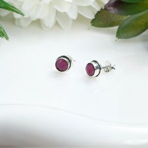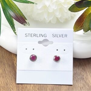 Solid Sterling Silver 925 Ruby Corundum Gemstone Stud Post Push Back Earrings Vintage Southwest Style Round Shape Fine Jewelry New. Includes flocked plastic card and packaging. Approximately 6mm. Great for a minimalist look to wear with your favorite ruby jewelry pieces, or wear in a second or third hole for an added pop of color. Multiple available. Tested and verified solid sterling silver 925 settings, post, and backs.