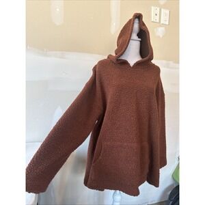 Bryn Walker Oversized Rust Colored Sherpa Fleece Pullover Hoody Kangaroo Pocket
