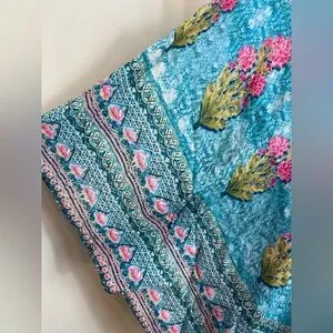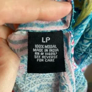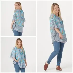 Tolani Collection caftan, size LP. Features include all over print, scoop neckline, curved hem, and a seam detail that provides shape. Fit is relaxed with maximum wearing ease. Excellent condition with no flaws. Like new!