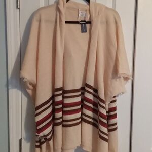 Melrose and Market Cream Poncho with Brown and Red Accents