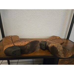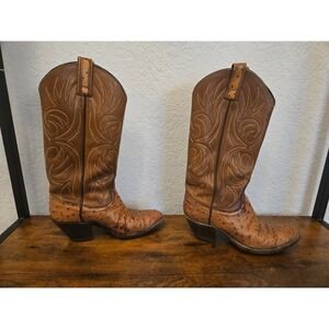 Step into classic Western charm with these stunning ostrich leather cowboy boots. The rich tan hue and intricate stitching create a timeless look, while the distinctive texture of the ostrich leather adds a touch of luxurious sophistication. Perfect for adding a stylish edge to your everyday outfits or making a statement at your next rodeo or country concert.