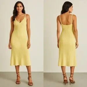 Lulus Yellow Ribbed Knit Midi Sweater Dress XS NWT