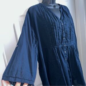 Calvin Klein Jeans Blouse Top Blue 1X Women V-Neck boho fall