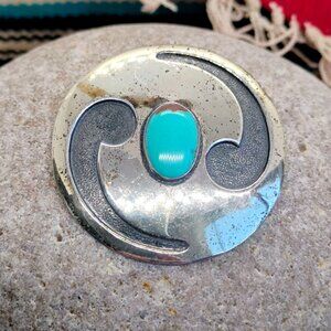 Vtg Native Sterling Silver Overlay Turquoise Brooch Pin 13.9g Round 2" Diameter