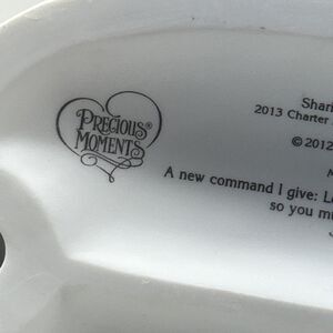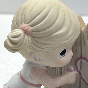 The Precious Moments Sharing My Heart With You figurine from 2012 is a ceramic collectible featuring a heart-shaped pattern. Standing at approximately 5 inches tall and adorned with multicolor detailing, this figurine is part of the Precious Moments collection and has a matte finish. The figurine captures the theme of sharing one's heart with another, making it a meaningful and decorative piece for any collector or home. Made in Indonesia, this figurine is a cherished addition to any collection or a thoughtful gift for a loved one.