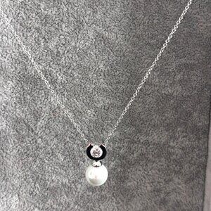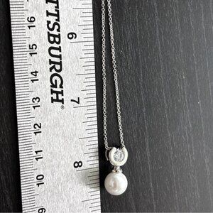 Silver Chain Necklace W/ Pearl & Crystal Pendant Elegant Design For Women Jewelr