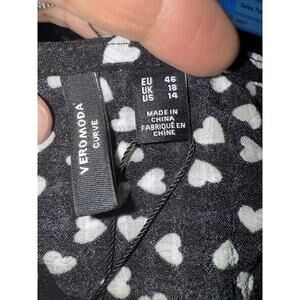 Vero Moda Curve VMCKARIN Vera LS Shirt Black White Heart Print Blouse Size 14NWT