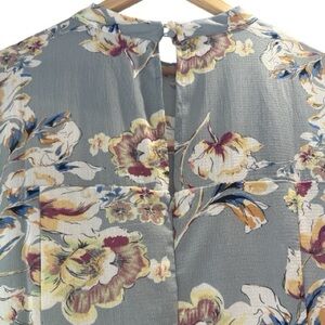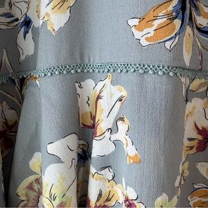 Suzanne Betro Sage Gray Floral Tiered Shift Dress Flared Long Sleeve Dress