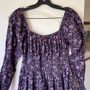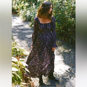 Rare Christy Dawn dress, Christy Dawn floral dress, romantic cotton maxi, long sleeve cottagecore dress, boho fall dress, organic cotton dress, ethical fashion dress, purple floral prairie dress, square neck dress, modest wedding guest dress, smocked maxi dress